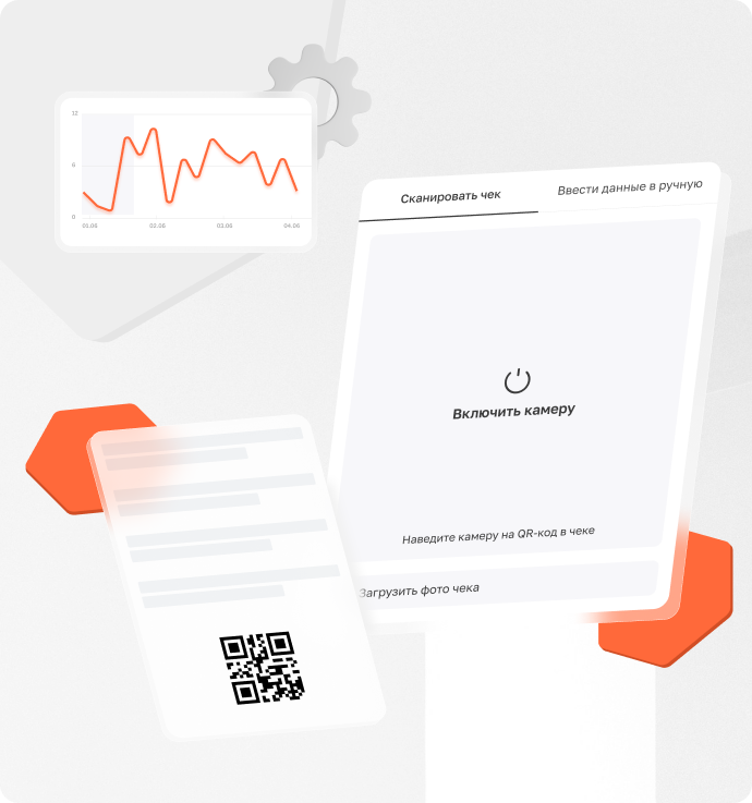 • Гибкая регистрация чеков – сканирование через камеру телефона или ручной ввод данных или загрузкой фото с телефона